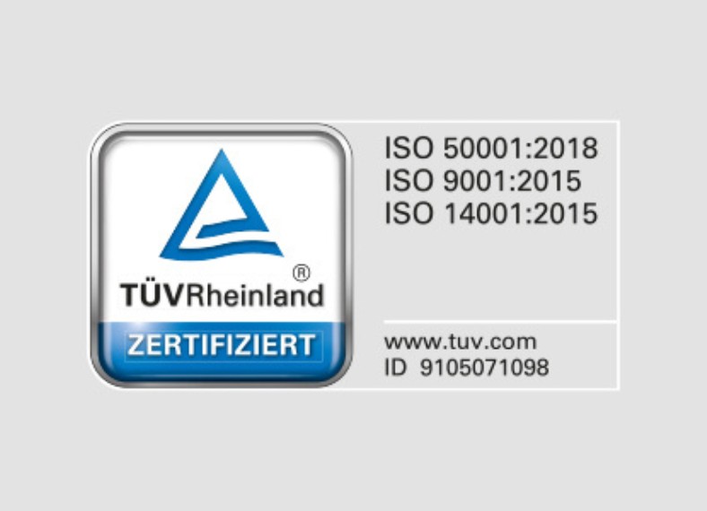 Systém řízení kvality podle ISO 9001, systém environmentálního managementu podle ISO 14001 a systém energetického managementu podle ISO 50001 jsou pravidelně auditovány a potvrzovány společností TÜV Rheinland / LGA InterCert. Všechny tři certifikáty od TÜV Rheinland jsou celosvětově uznávanými normami.
