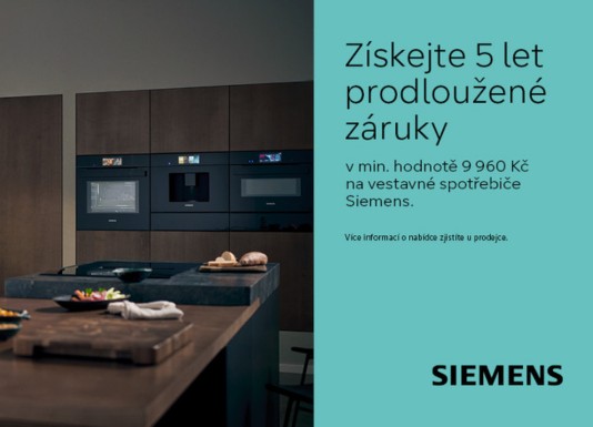 Pokud plánujete novou kuchyň se spotřebiči nebo chcete vyměnit staré spotřebiče za nové, zbystřete. Nově nabízíme mimořádnou prodlouženou záruku 5 let na vybrané produkty SIEMENS.